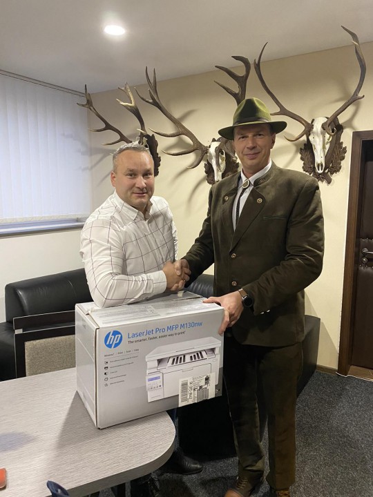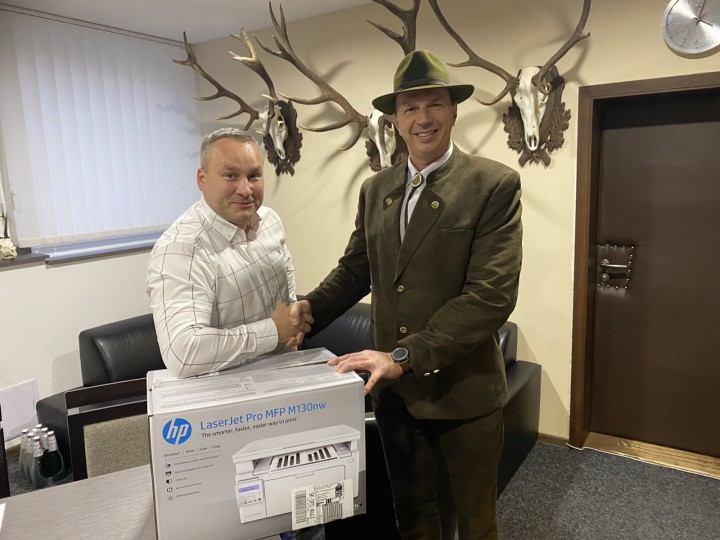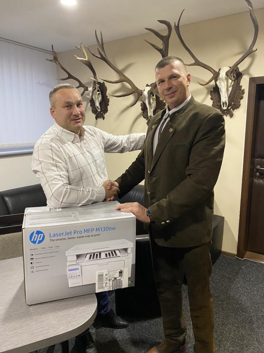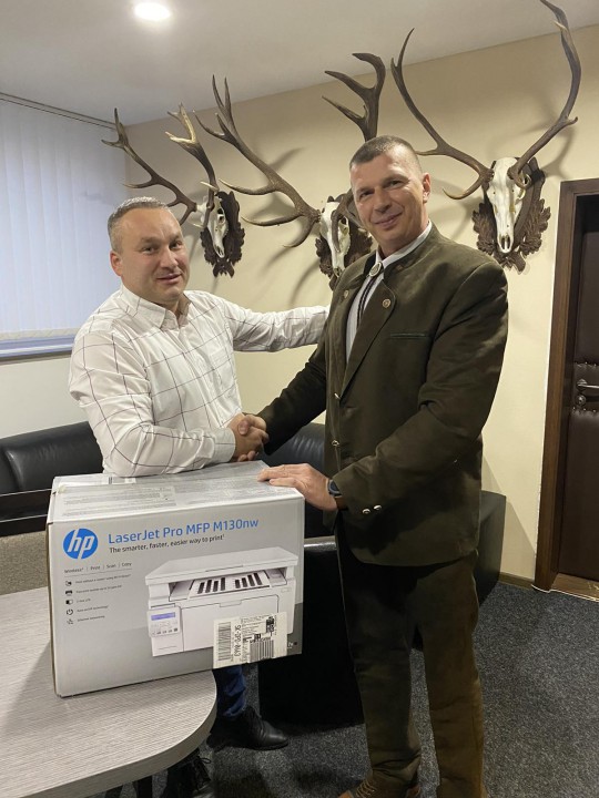 Za sprostredkovanie sponzorského daru ďakujeme aj priateľovi poľovníkovi pánovi Rastislavovi Rondzíkovi a členovi rady KT SR Rastislavovi Fedorovi. Veríme, že tlačiareň nám bude spoľahlivo slúžiť dlhé roky pri organizovaní súťaží, kurzov, seminárov a certifikačných skúšok pre poľovníckych trubačov.
